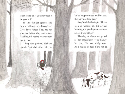 Once upon a time there was a little girl who had never heard of Christmas and therefore did not know what it was. So begins this story about a cat, a dog, a hawk, a fox, a mockingbird, and that little girl, as they set off into the snowy woods together in search of the answer. Each of the little girl's companions has questions along the way: What does Christmas feel like? Is it comfortable and warm? What does it sound like? Does it laugh? Does it shriek? Beneath the gently falling snow, they discover a different answer to their questions than expected: Christmas is how Christmas feels.