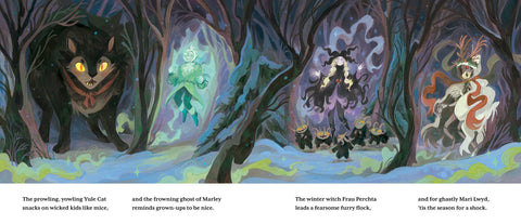 Better watch out! Something delightfully dreadful lurks in the shadows cast by holiday lights. From Alpine Austrian and German folklore, Krampusnacht (Krampus Night) is when the Krampus—a horned and hooved Yuletide beast—clomps door-to-door to carry away naughty children in his basket. In this beautifully illustrated ode to old European holiday tradition, a little boy named Felix awaits a visit from the Krampus and a festively frightful cast of characters from folklore, including the Yule Cat, Marley’s Ghost, Mari Lwyd, and Frau Perchta.