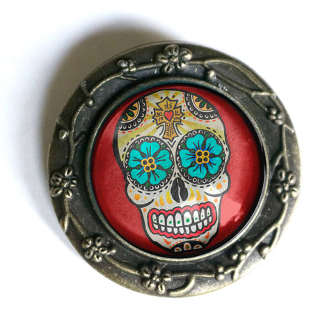 Sugar Skull with Blue Eyes Brooch, Handmade in Detroit