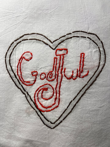 Mom does each stitch by hand with needle and thread, and once the embroidery is done, she and my sister Marietta launder the towels and iron them, so they are ready to use once you receive them. They are big and thirsty: 100% flour sack cotton, and just about 28" square once they've had that initial wash & dry. The towels themselves are loomed in Pakistan, but the hand embroidery is done by Mom at the old family homestead in Boca Raton, Florida. Machine wash cold and tumble or line dry. You can iron them if you'd like, but we like ours a little wrinkly. So does Mom.
