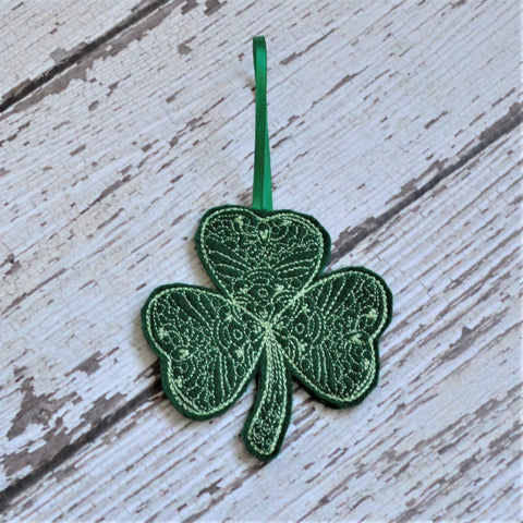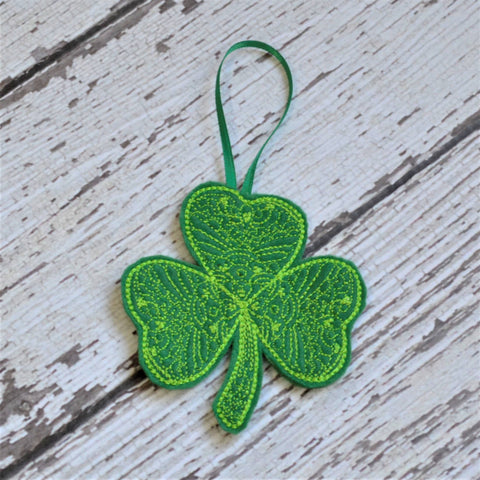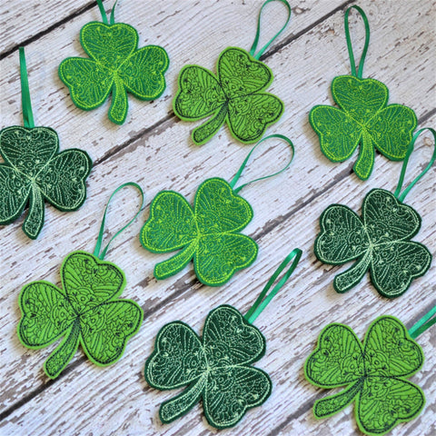 These shamrocks are perfect for St. Patrick's Day decorating! They are made in Minnesota of felt and embroidered in contrasting shades of green. Just about 3 1/4" tall x 3" wide with a 2" ribbon loop on top. Sold individually, in three shades of green... let us choose for you, or if you order more than one, we'll do our best to send you an assortment.